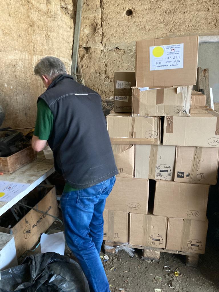 Grâce à ce système de partage de container, ce sont près 2 m3 de cartons étiquetés Lire et Grandir au Bénin qui ont été acheminés au port de Cotonou et stockés à Djaktomey dans l’attente de la construction de la bibliothèque.